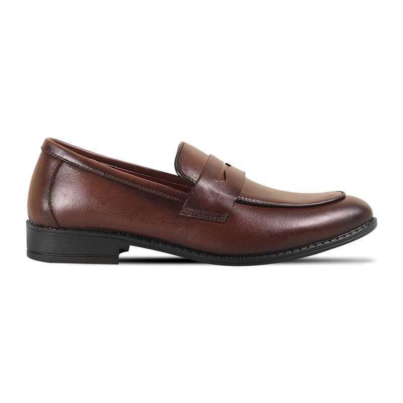This is an antique brown colored leather penny loafer shoe. It is made entirely of leather, which gives it a classic and elegant look. There is no hassle of lacing which is easy to put on and take off. It will add a touch of elegance to your personality, from formal office meetings to any social event.