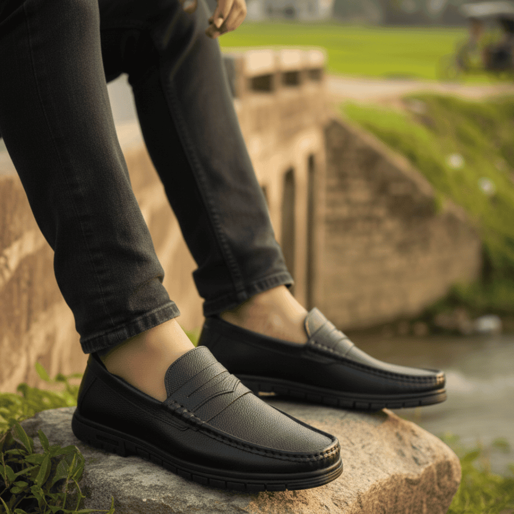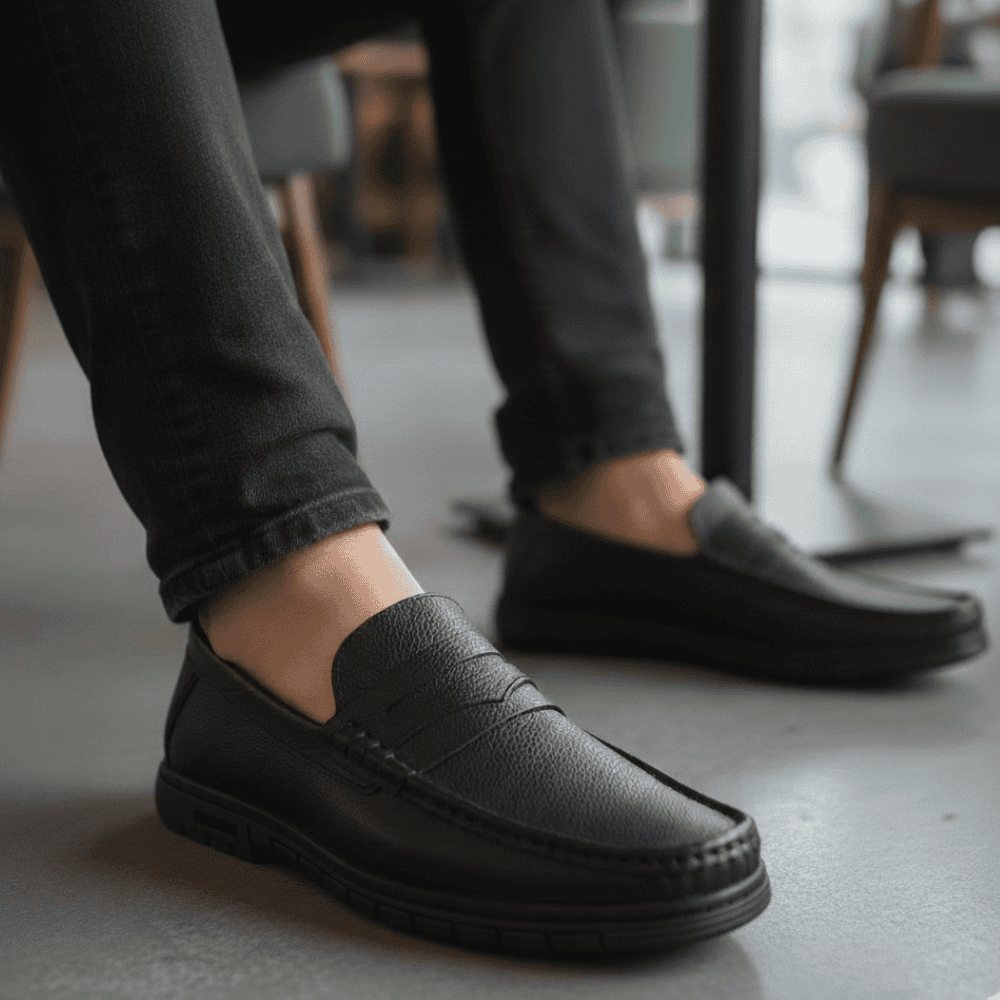 পুরুষদের জন্য তৈরি একটি স্লিপ-অন লোফার। জুতাটি জেনুইন চামড়ার তৈরি, যা এটিকে একটি ক্লাসিক লুক দেয়। আরামদায়ক পরিধানের জন্য এতে আছে একটি পুরু, কালো কমফোর্ট সোল। দৈনন্দিন ক্যাজুয়াল বা সেমি-ফরমাল ব্যবহারের জন্য এটি একটি স্টাইলিশ জুতা।