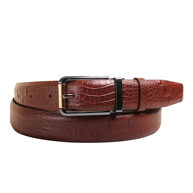 Brown Crocodile-Embossed Leather Belt For Men SB-B220 Brown Crocodile-Embossed Leather Belt For Men SB-B220