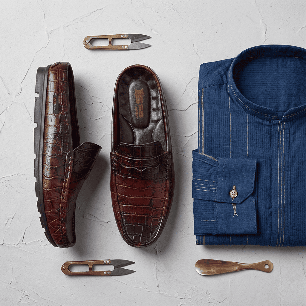 এই প্রিমিয়াম হাফ লোফারটি আকর্ষণীয় ক্রোকোডাইল প্যাটার্নের খাঁটি চামড়া দিয়ে তৈরি। এর আরামদায়ক সোল এবং আধুনিক ডিজাইন পাঞ্জাবী বা ক্যাজুয়াল পোশাকে আপনাকে দেবে এক অভিজাত ও স্মার্ট লুক।