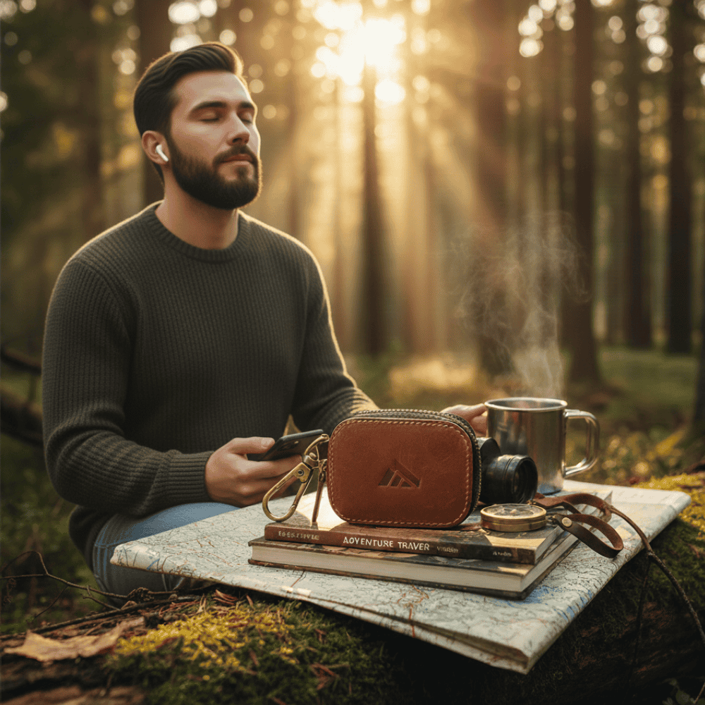 Premium handcrafted leather earbuds cover, offering stylish protection and a convenient metal hook for secure, everyday carry. Perfect for AirPods.