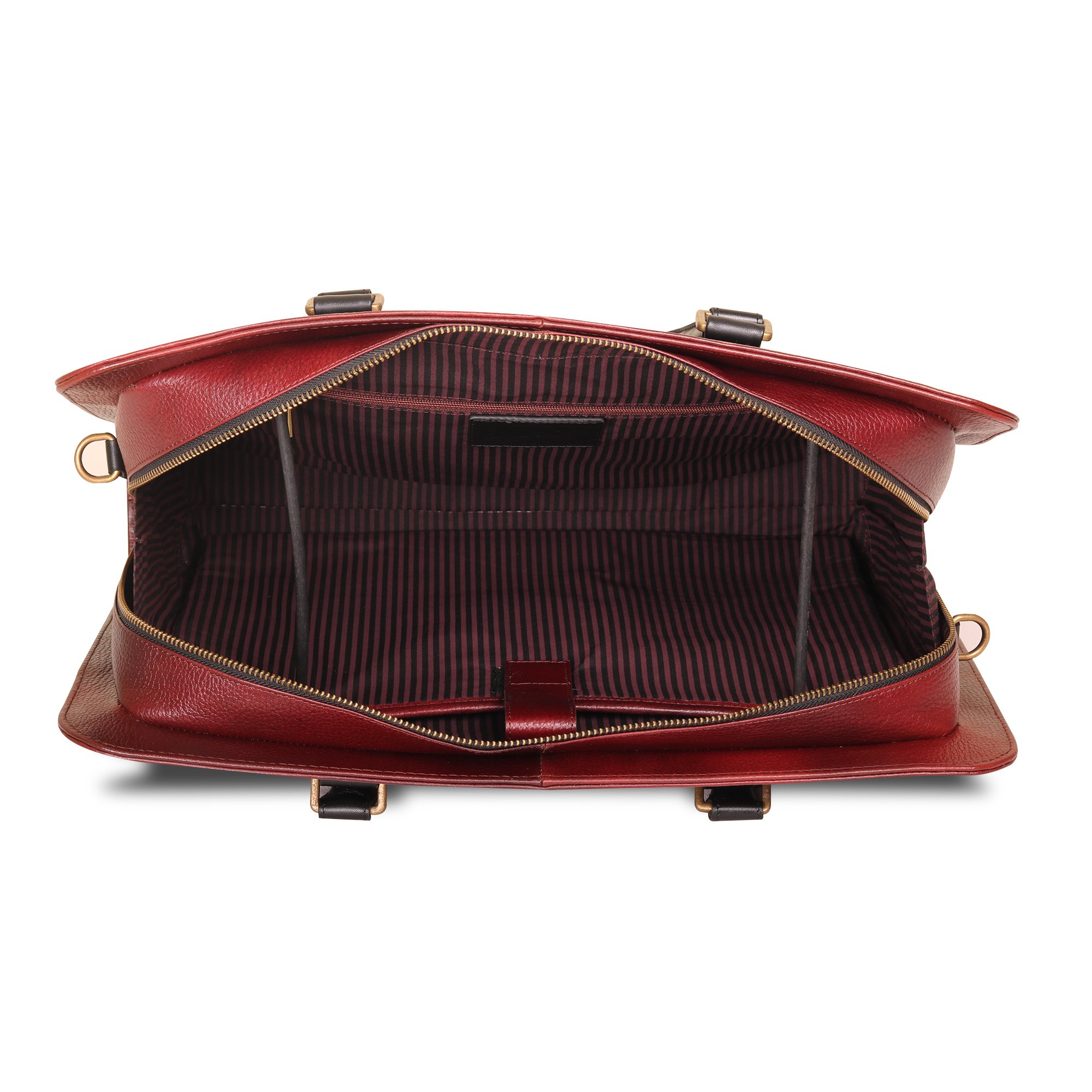 This premium leather executive bag will add a new dimension to your personality. With a classic design, this oxblood red and black color combination is perfect for any office or business trip. Its sturdy construction will help keep your laptop, documents, and other belongings safe and organized. It is comfortable to carry either way—in hand or on the shoulder.