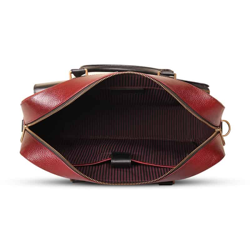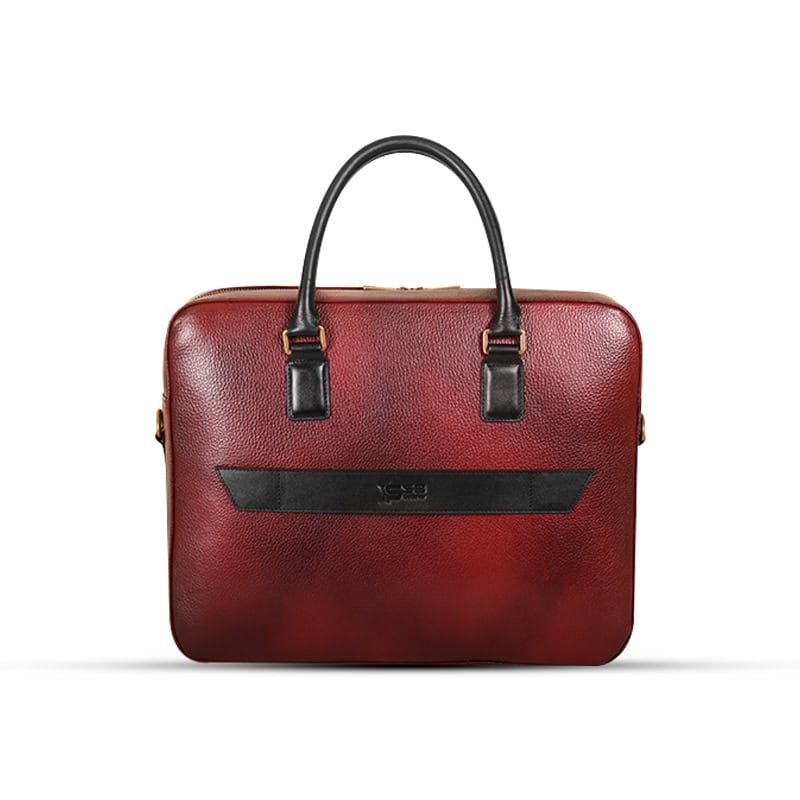 This premium leather executive bag will add a new dimension to your personality. With a classic design, this oxblood red and black color combination is perfect for any office or business trip. Its sturdy construction will help keep your laptop, documents, and other belongings safe and organized. It is comfortable to carry either way—in hand or on the shoulder.